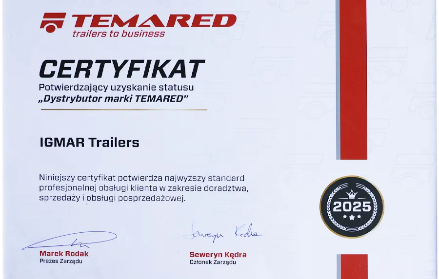Wybierając przyczepę Temared z naszej oferty, stawiasz na niezawodność i bezpieczeństwo. Nasze modele przyczepek są regularnie serwisowane i kontrolowane, aby zapewnić Ci bezpieczeństwo i komfort użytkowania. Oferujemy atrakcyjne ceny naszych przyczep, dzięki czemu zyskujesz pewność, że zawsze otrzymasz najlepszą ofertę. Niezależnie od tego jakiej przyczepy szukasz, jesteśmy, żeby pomóc ci w zakupie. Skontaktuj się z nami w przypadku jakichkolwiek pytań i dołącz do grona klientów.